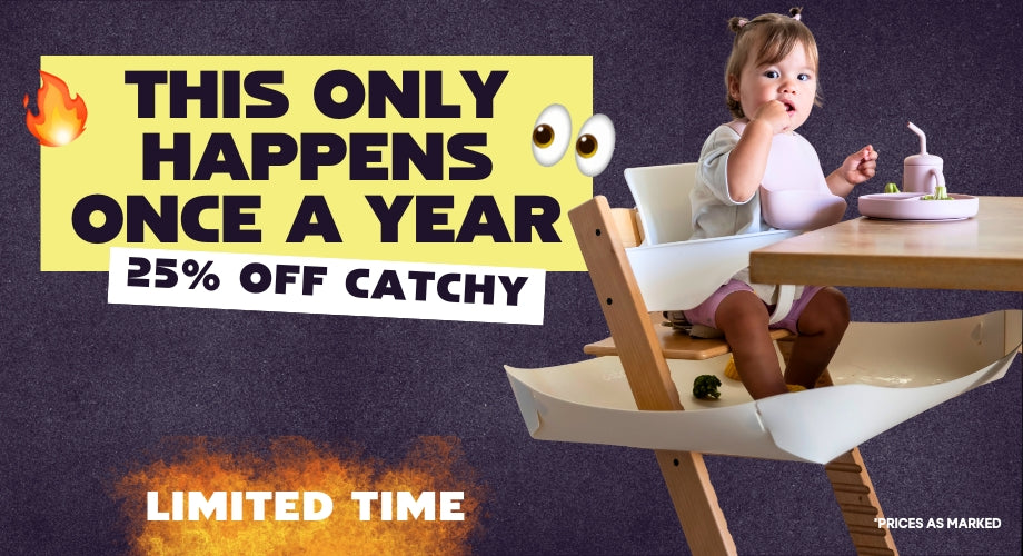Catchy is made from a waterproof and durable material, making it very easy to clean. No need to remove it between meals, simply wipe it clean in place (just like you clean the highchair tray) and it's good to go for the next meal. You can see Catchy Co-Founder, Rachel’s, cleaning demonstration & tips